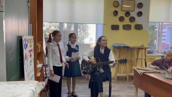 В преддверии дня учителя учащиеся вокального класса совместно с преподавателем Мусиной К.С. провели акцию-поздравление «Славим мы величие учителя», в ходе которой поблагодарили педагогов за их нелегкий труд.
