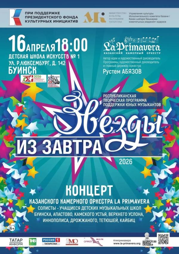 Когда: 18:00, 16.04.2026 Где: БДШИ N1. г. Буинск, ул.Р.Люксембург, д.142 До встречи на концерте!