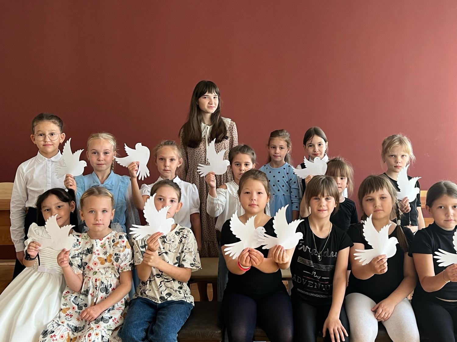 Также выступили юные чтецы, музыканты и вокалисты, которые подарили зрителям песни и стихи и о мире на всей земле.