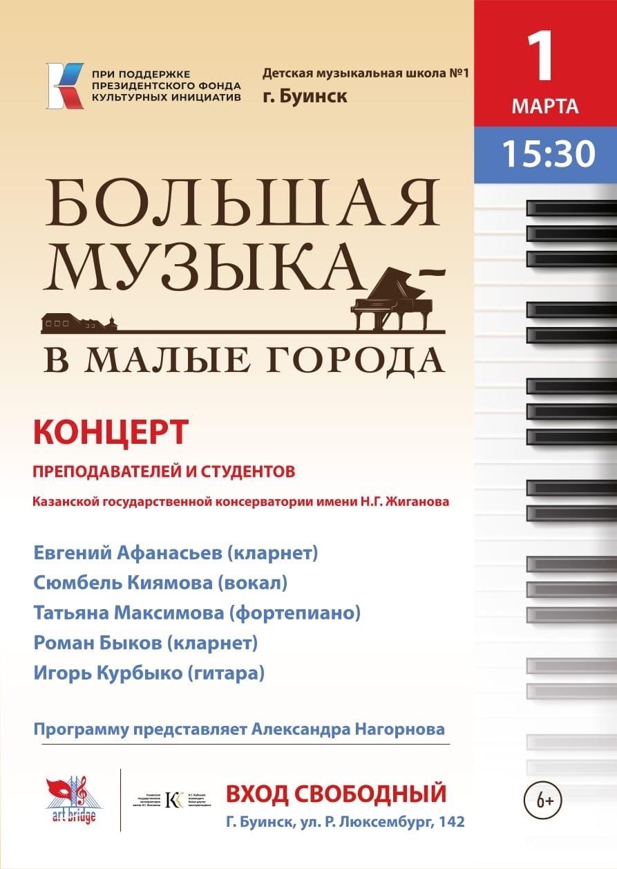 1 марта в Концертном зале МБО ДО БДШИ 1 состоится концерт преподавателей и студентов Казанской государственной консерватории имени им.Н.Г. Жиганова.
