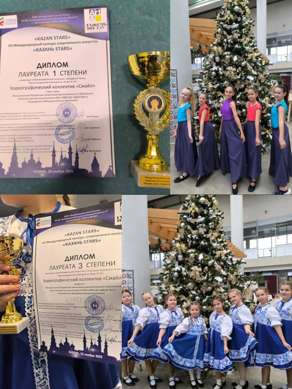 23 ноября 2025 года городе Казани прошел Международный конкурс современного искусства «Казань-stars»! Нашу школу в данном конкурсе представлял хореографический коллектив "Смайл" (преподаватель Макарова Н.А.).
