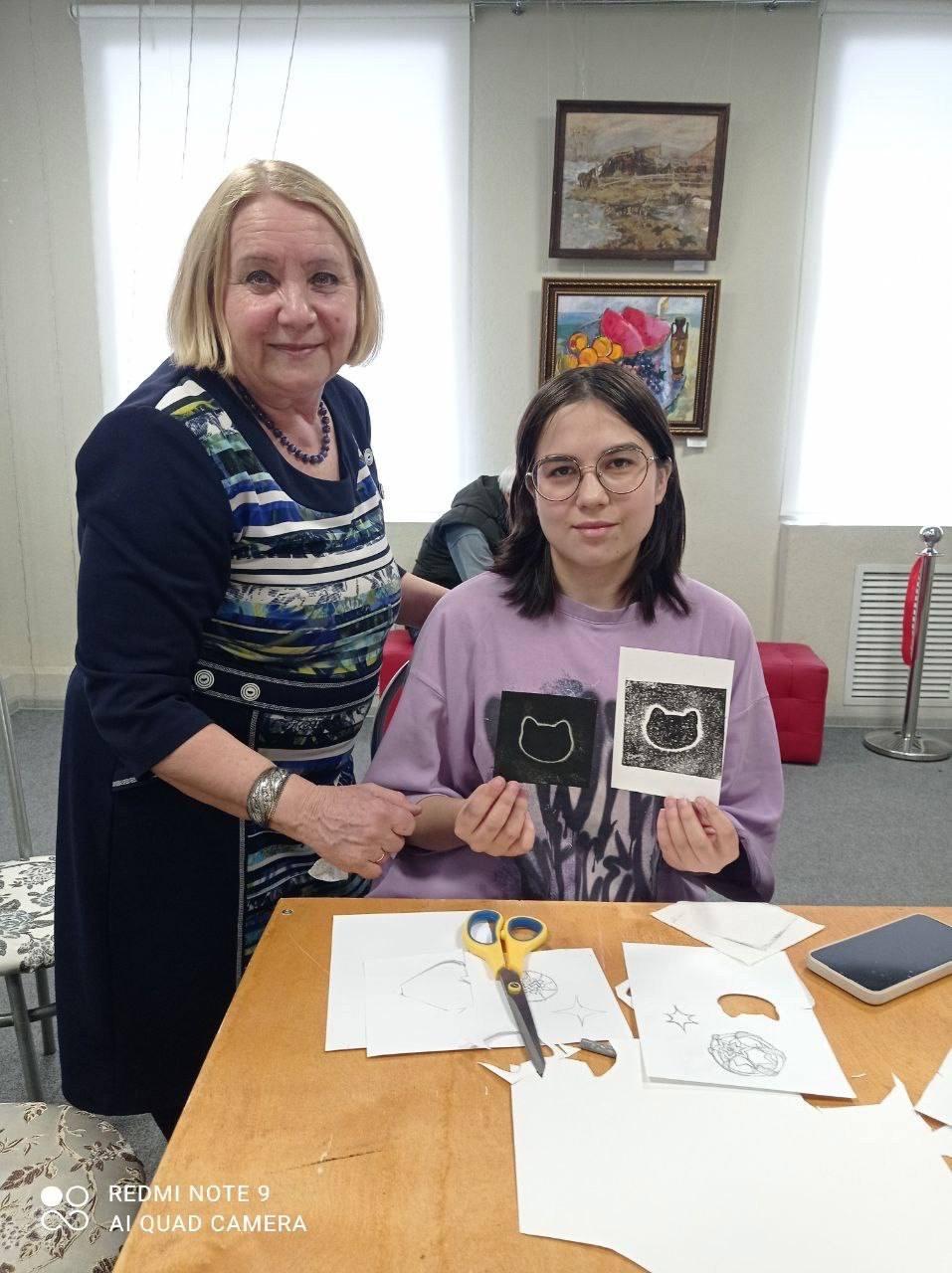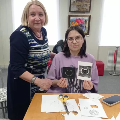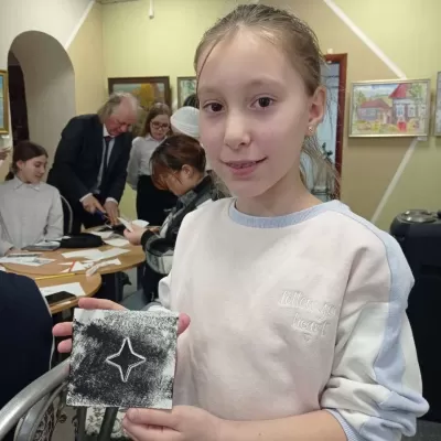 4 апреля в краеведческом музее Буинска состоялось открытие выставки заслуженного работника культуры РТ Татьяны Бердниковой. После церемонии открытия для желающих, прошёл мастер класс по печатной графике "Монотипия". Автор выставки познакомила детей с технологией изготовления простейших оттисков из бумаги и картона.