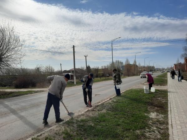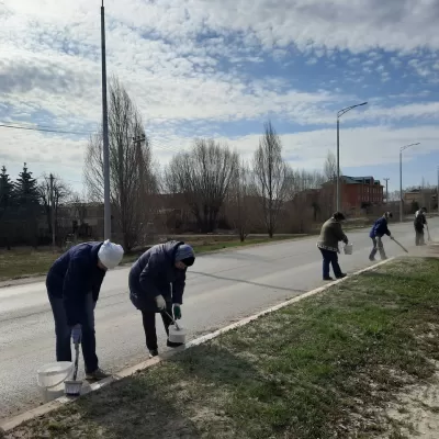 19 апреля коллектив МБО ДО БДШИ 1 участвовал в побелке бордюров на закрепленной территории.