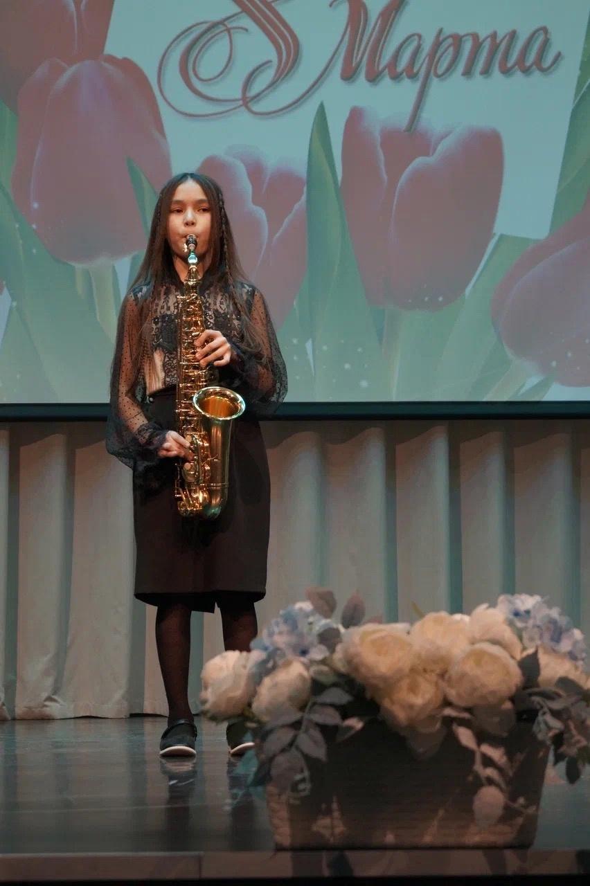 Учащиеся школы подарили музыкальный букет, состоящий из песен, танцев, инструментальных номеров и теплых поздравлений.