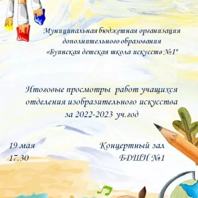 19 мая в 17.30-Итоговые просмотры работ учащихся отделения изобразительного искусства.
