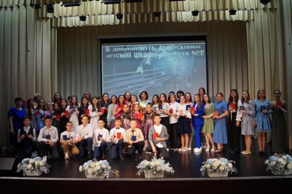 Для многих в Детской школе искусств настал особенный, волнительный, трепетный, радостный и немного грустный день: для преподавателей, у которых подошел к концу еще один учебный год, для родителей, потому что в жизни их детей можно поставить очередную запятую, и, конечно же, для выпускников – героев вечера.