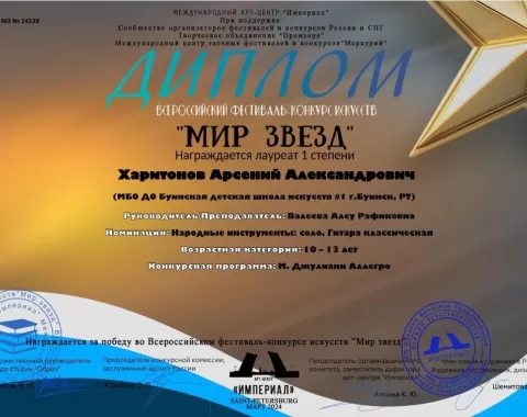 Всероссийский фестиваль конкурс искусств «Мир звёзд»