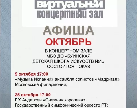 Предлагаем вашему вниманию афишу показов Виртуального концертного зала БДШИ 1 на октябрь-месяц.